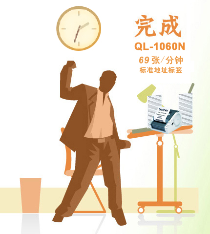 QL-1060N内置网络打印的功能。10/100Base-TX的有线以太网接口,提供网络打印服务,适合共用一台打印终端的小型工作组完成各自打印工作的需求。